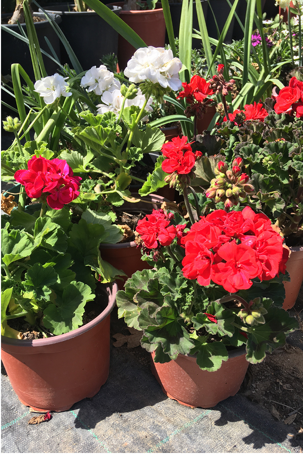 Το Γεράνι είναι ένα φυτό πασίγνωστο, τυπικά μεσογειακό, με ανθοφορία πλούσια καθ’όλη τη διάρκεια του χρόνου. Προτιμά ηλιόλουστες, απάνεμες θέσεις, είναι κατάλληλο για φυτεύσεις σε παραθαλάσσιες περιοχές, παρουσιάζει όμως μειωμένη αντοχή στο ψύχος. Διατίθεται σε πολλά χρώματα και αντέχει στο λίγο νερό. Χρειάζεται συνεχώς καθάρισμα από τα ξερά λουλούδια για να επιτύχουμε συνεχή ανθοφορία.