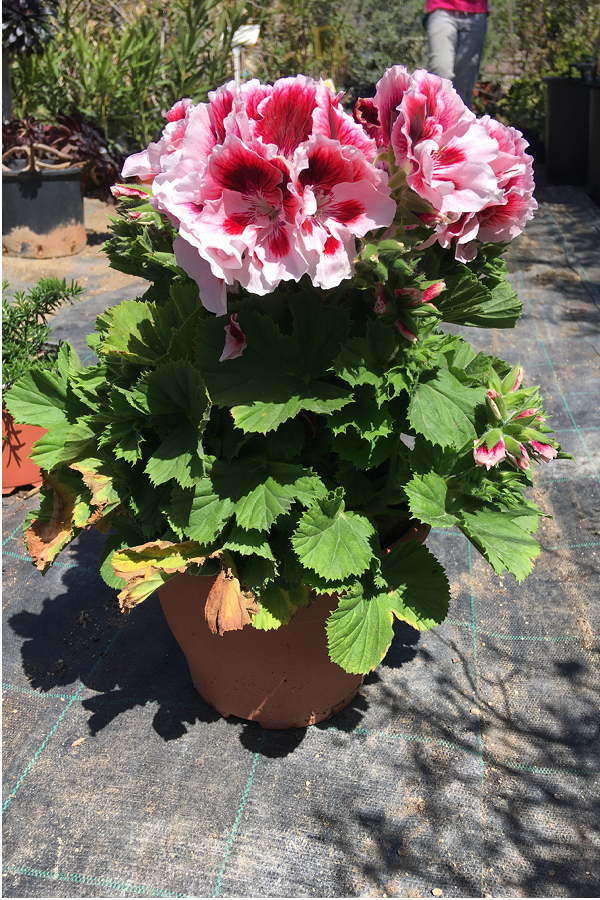 Το φυτό Πελαργόνι είναι ένα πολυετές φυτό ποώδους ανάπτυξης, που λειτουργεί ως αειθαλές ή μερικώς φυλλοβόλο ανάλογα με τις συνθήκες ψύχους του χειμώνα. Το μέγιστο ύψος του φυτού σε πλήρη ανάπτυξη πλησιάζει το ένα μέτρο, ενω το πλάτος του αγγίζει εύκολα τα εξήντα εκατοστά. Έχει μεγάλη διάρκεια ανθικής περιόδου, από την άνοιξη μέχρι τα πρώτα κρύα του χειμώνα. Μέσα σε αυτό το χρονικό διάστημα, παρουσιάζει δύο εξάρσεις πιο έντονης ανθοφορίας, η μία στα μέσα της άνοιξης και η άλλη το φθινόπωρο. Τα άνθη του είναι δίχρωμα σε αποχρώσεις του ροζ, του μωβ, του κόκκινου, του λευκού και του πορτοκαλί. Προτιμά τα ελαφριά, καλά αποστραγγιζόμενα εδάφη.